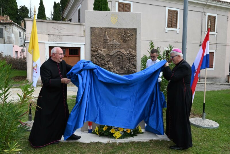 Nakon mise, mons. Zgrablić i benkovački župnik don Anđelko Buljat, svečano su otkrili kameno postolje na kojem se nalazi reljef, brončani odljev stare benkovačke župne crkve Male Gospe u spomen na dvije jubilejske godišnjice u Crkvi i 160 godina od posvete nekadašnje župne crkve Rođenja BDM u Benkovcu koja je bila srušena u Domovinskom ratu.