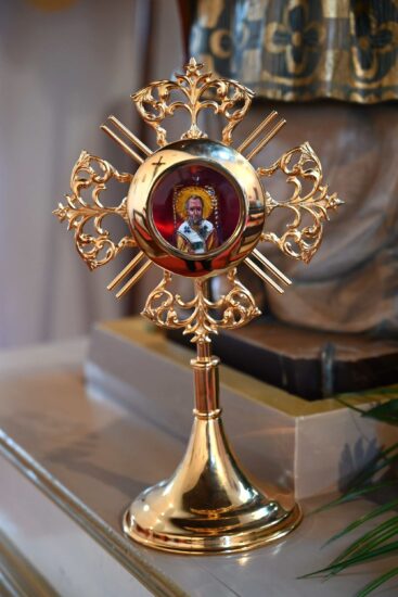 Na početku mise nadbiskup je blagoslovio relikvijar s Manom sv. Nikole. To je relikvija prvog stupnja, tekućina koja izlazi iz svečevog tijela tijekom godine u Bariju te se na dan prenošenja tijela sv. Nikole iz Male Azije u Bari ta tekućina vadi iz njegovog groba.