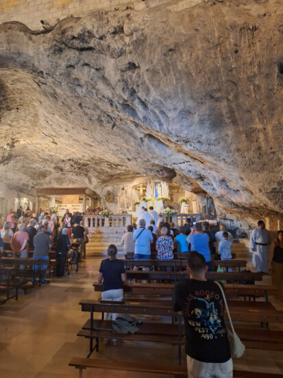 Drugi dan hodočašća, 25. rujna, putovali su autobusom u svetište sv. Mihaela na brdu Gargano koje je udaljeno oko 160 kilometara od Barija. U špilji gdje se četiri puta, od 5. do 17 st., ukazao arkanđeo sv. Mihael, slavili su sv. Misu u 11,45 sati. Na ulazu u crkvu stoji biblijski tekst: “Kako je strašno ovo mjesto! Zaista, ovo je kuća Božja, ovo su vrata nebeska!” (Post 28,17).