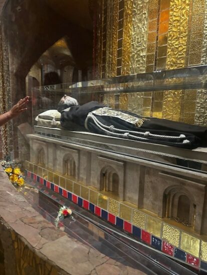 Slavili su svetu Misu u 10,15 sati u crkvi u kojoj se lijevo od oltara, u pokrajnoj kapelici, čuva njegovo tijelu u staklenoj vitrini. Nakon sv. Mise posjetili su muzej koji prikazuje njegov život i općenito život u samostanu u 15. stoljeću.