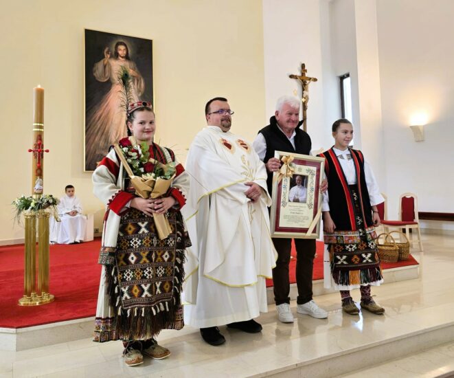 Srećko (76) je sakristan u Polači četrdeset godina, skoro polovicu svoga života. Na kraju misnog slavlja u nedjelju, 12. travnja, u polačkoj župnoj crkvi, Zahvalnicu su mu uručili don Ivan Perković, župnik Polače i dvije župljanke u narodnoj nošnji. Bio je to dirljivi trenutak za sve na misi, u poštovanju za Srećka koji je i u toj prigodi pokazao svoju skromnost i kojem su potekle suze kad mu je Priznanje uručeno.