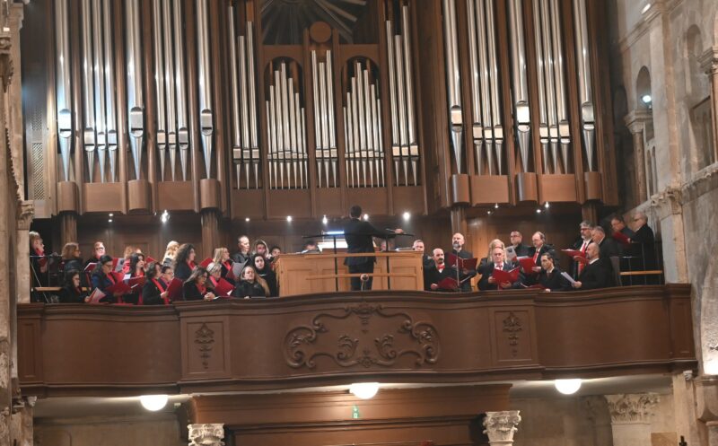 Svečano pjevanje predvodio je Katedralni zbor sv. Stošije s gostima, pod vodstvom i u orguljaškoj pratnji Dragana Pejića i ravnanjem dirigenta Luke Čačića.