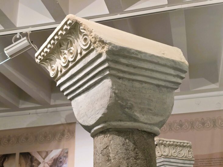 Središnji dio postava čine rekonstruirani stupovi i replike kapitela u originalnoj veličini sa scenom Krista Kralja, kao i prikaz rekonstrukcije zvonika kako izgleda iznutra.