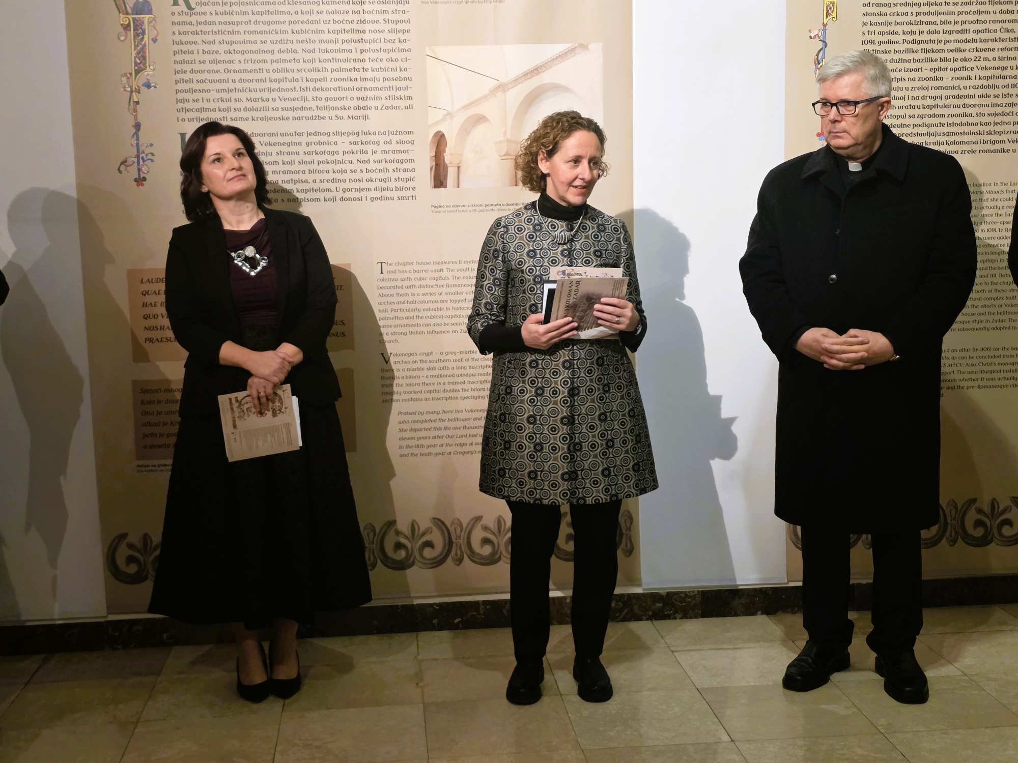 „Kapela na prvom katu zvonika, po svojoj konstrukciji i arhitekturi, smatra se jednim od najvrjednijih ostvarenja hrvatske srednjovjekovne baštine. Vekenega je završila izgradnju kapitularne dvorane gdje je nakon smrti 1111. i pokopana“, rekla je autorica Izložbe.