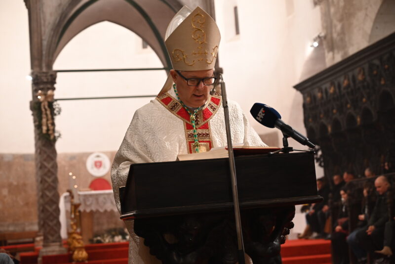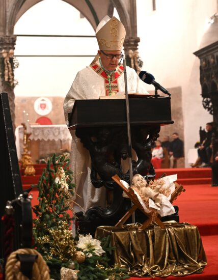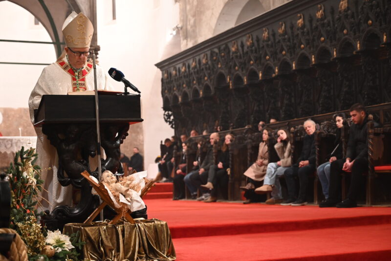 Noćas, dok se između starodrevnih zidova ove katedrale skladno razlijeva tišina, molitva, božićna pjesma i milozvučni glas orgulja, okupljeni smo oko jednog od najvećeg i najnježnijeg otajstva naše vjere: Bog postaje čovjekom, Bog postaje Dijete, Krist se postaje jedan od nas, Bog se želi nastaniti u našim životima.