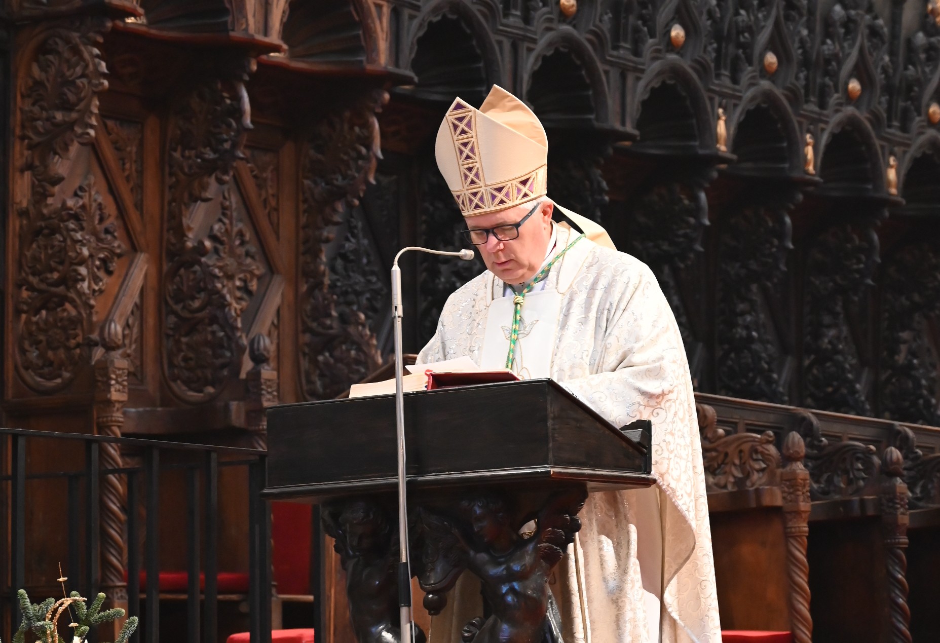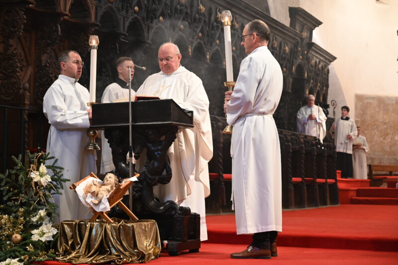 Pastiri u Betlehemu nalaze Mariju, Josipa i Dijete Isusa položeno u jaslicama. „Kako nekad, tako i danas: Bog se može pronaći u jednostavnosti; ne u spektaklu ovoga svijeta, nego u malenosti; ne u moći i sili, nego u blizini ljubavi i prijateljstva. Jaslice nam otkrivaju kakav je Bog. To je Bog koji želi da ga radosno primimo kao malo dijete, srcem, kako bi nas mogao preobraziti iznutra“, poručio je predvoditelj slavlja.