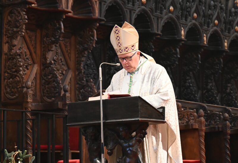 Kao Bogorodica, ona ne nosi samo Dijete Isusa u naručju, nego nosi i otajstvo Boga koji je postao čovjekom – u svojoj vjeri, u povjerenju koje ne traži trenutačna objašnjenja, nego se oslanja na Božju vjernost“, istaknuo je nadbiskup. Rekao je kako Marija „dopušta Bogu da je vodi, ne samo u izvanjskim događajima, nego i u mislima, osjećajima i dubinama srca, prepuštajući se njegovoj volji korak po korak“.