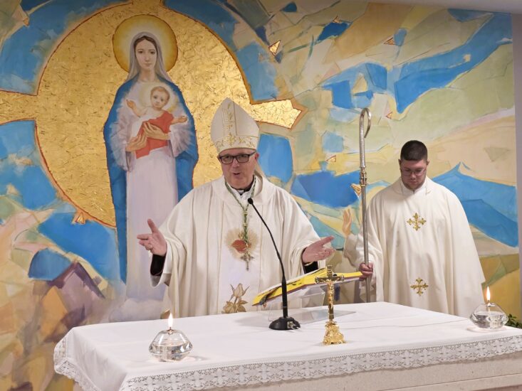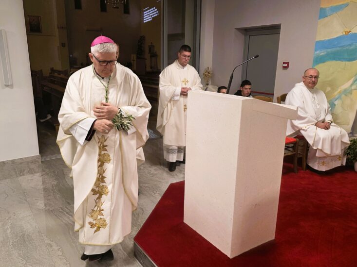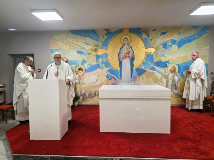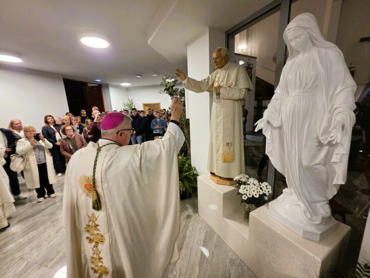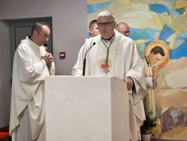 „Gospodin vidi nas kao što je vidio onu ženu, zove nas po euharistiji, dotiče da nas oslobodi i uspravi“, rekao je mons. Zgrablić, poželjevši da ta kapela bude mjesto našeg uzdignuća i preobraženja; oltar vrelo milosti, a kipovi Bezgrešne i sv. Ivana Pavla II. podsjetnik da svetost nije nedostižna.