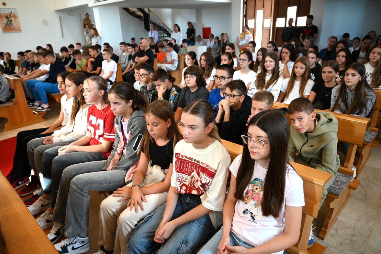 Čovjek se osjeća dobro kad nekome nešto lijepo učini, kad dobije dobru ocjenu, pomogne roditeljima. „To je Gospodin koji te onda pohvaljuje, koji ti govori da si učinio dobro. Moramo učiti jer to je potrebno, da puno toga znamo u životu. Svaki dan nešto učimo, ne samo u školi. Škola je privilegirano mjesto gdje nešto posebno učimo, razne predmete. Ali, u našem životu nije dovoljno da samo steknemo neke informacije, da budemo poput računala u kojem se pohranjuje puno podataka. Nego je jako važno da slušamo naše srce. I naše srce nam pomaže da slušamo što nam Bog govori. A Bog nam govori i poziva nas na ono što i mi želimo – biti dobri. Jer Božja volja i naša volja u bîti su iste. Bog od nas želi ono što i mi sami želimo. Kad smo dobri, Bog nam je blizu. Zato je potrebno truditi se biti dobar“, potaknuo je mons. Zgrablić.