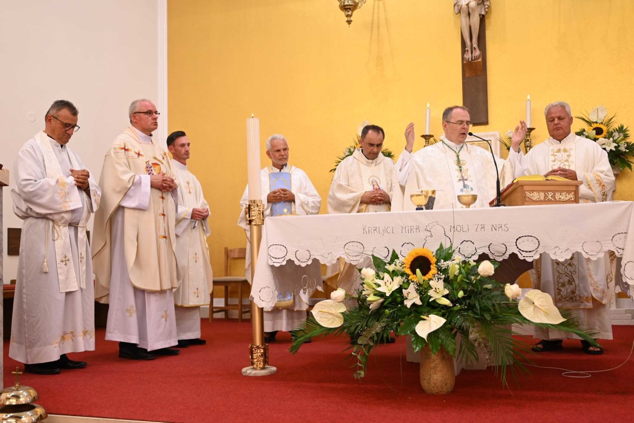 Varaždinski biskup Bože Radoš predvodio je na blagdan Kraljice mira svečano večernje misno slavlje u župnoj crkvi Kraljice Mira na Stanovima u Zadru u četvrtak, 22. kolovoza.
