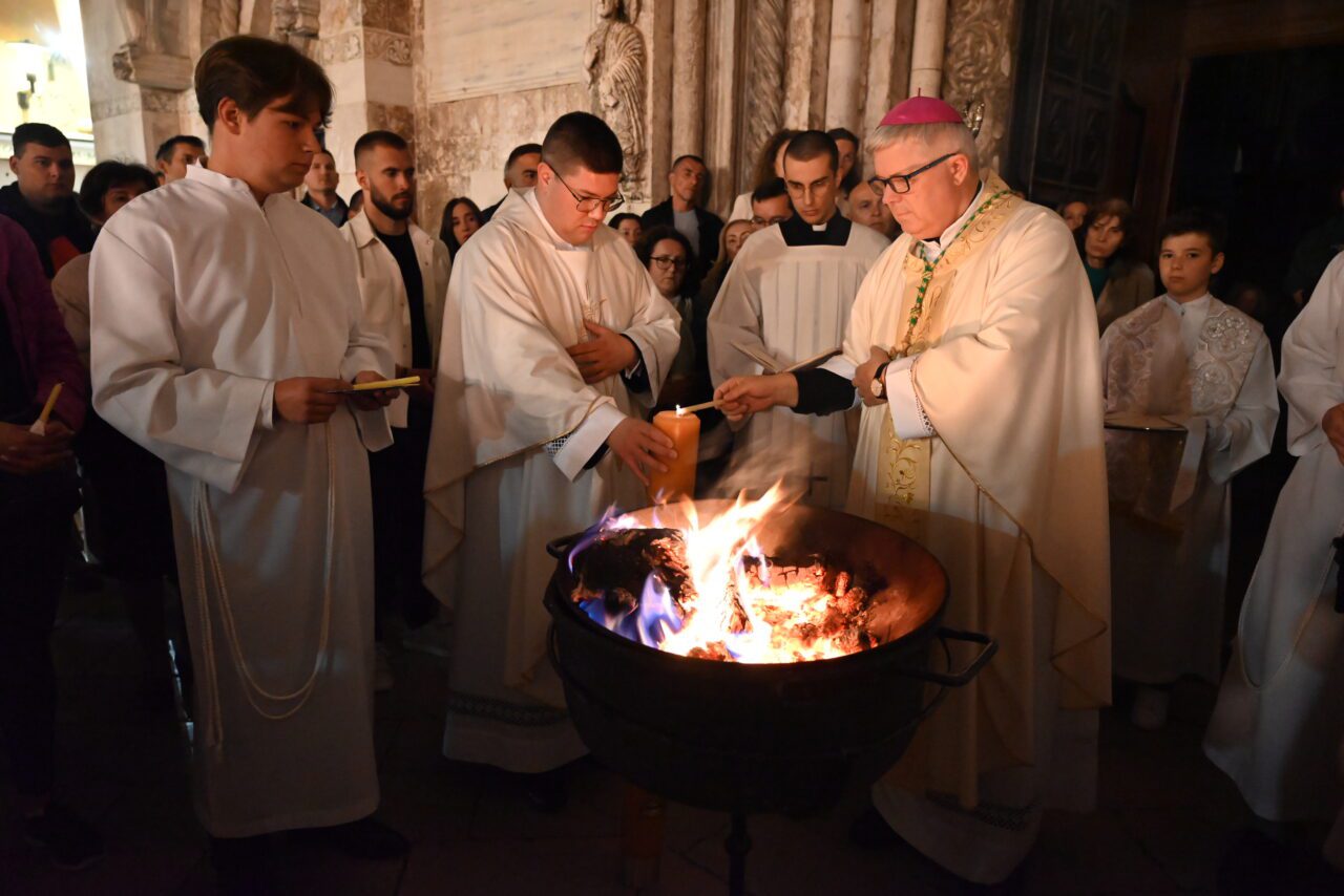 Vazmeno bdjenje na Veliku subotu, 19. travnja, u katedrali sv. Stošije u Zadru predvodio je zadarski nadbiskup Milan Zgrablić. Bdjenje je počelo s blagoslovom novog ognja na Trgu sv. Stošije ispred katedrale.