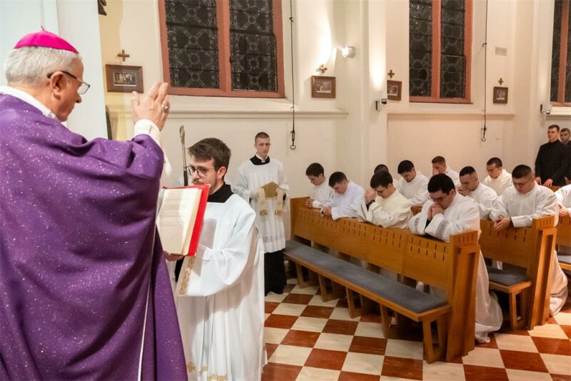 Na kraju homilije mons. Gorski primijetio je kako danas nedostaje svjedoka budućnosti – onih koji ukazuju na važnost odnosa prema nebu. Pozvao je bogoslove da budu svjesni dostojanstva trenutka i poslanja koje preuzimaju. „Dobro zapamtite da ne činite to u svoje ime. Činite to u ime Crkve i za Crkvu, u ime onoga koji vas je pozvao. Budite svjesni da ste pred očima zajednice i pred očima Božjim. Neka vas uvijek ohrabruju riječi proroka Izaije: ‘Ne boj se, ja ti pomažem!’“, zaključio je biskup Gorski.